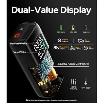 When compared to traditional air compressors, the WARWOLF inflator stands out with its portability and impressive battery performance. Many competitors rely solely on 12V power, whereas this model allows you to inflate without a continuous power source, making it far more reliable during emergencies. Its digital gauge ensures precise readings while the auto shut-off feature is superior, eliminating guesswork. Moreover, the inclusion of a power bank capability adds versatility not commonly found in its competitors.