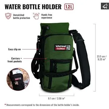 Show more Introducing the Water Bottle Holder for 40oz Bottles by Wild Wolf Outfitters, the ultimate solution for adventurers who refuse to compromise on freedom and convenience while on the move. Whether you're hiking, jogging, or hitting the gym, this expertly crafted holder allows you to carry your hydration essentials hands-free. Designed with a detachable and adjustable padded shoulder strap, it perfectly balances comfort and accessibility. No more awkwardly gripping your water bottle; instead, enjoy the freedom to embrace your adventure with both hands!