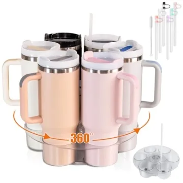 Stylish Water Bottle Organizer | Rotating Cup Holder for Stanley 40oz, Includes Straws & Brush