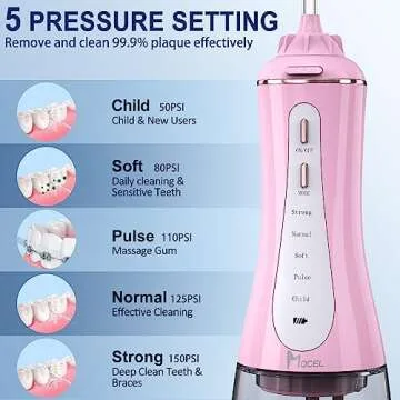 Water Dental Flosser Cordless Teeth Cleaning MOCEL 5 Modes Oral Irrigator Portable and USB C Cable Rechargeable IPX7 Waterproof Flossing Teeth Pick Irrigation Cleaner for Home Travel (Pink)