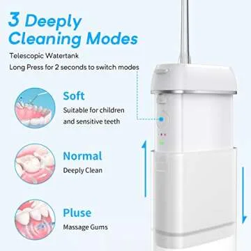 Water Flosser for Teeth, Enpuly Mini Portable Rechargeable Dental Oral Flossing Irrigator for Braces with 5 Jet Tips, 3 Modes & IPX8 Waterproof, for Travel & Home White