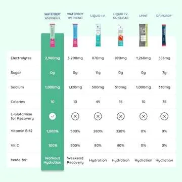 Show more Revolutionize your hydration routine with Waterboy's innovative electrolyte drink mix! Crafted for athletes and health-enthusiasts alike, this product offers an impressive 2,960mg of electrolytes per packet, ensuring that you replenish your body more effectively than typical hydration solutions. Forget the synthetic chemicals and artificial colors found in conventional drinks; Waterboy champions an all-natural formula that is gluten-free, dairy-free, vegan-friendly, and contains zero sugar with only 10 calories per serving, making it a guilt-free choice for anyone conscious about their health. Proudly made in the USA, Waterboy sets a gold standard for hydration mixes that truly work.