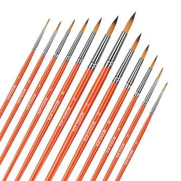 Watercolor Paint Brushes Set - 12Pcs Round Pointed Painting Brush for Acrylic, Gouache, Oil