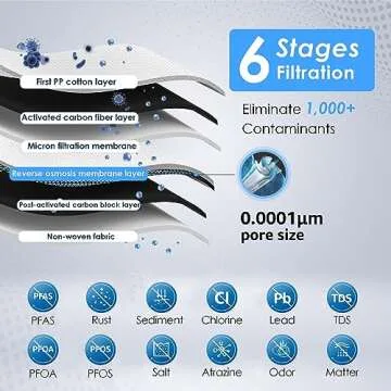 Waterdrop D6 Reverse Osmosis Water Filter, 600 GPD Under Sink Reverse Osmosis System, Reduce PFAS, 2:1 Pure to Drain, Tankless RO Water Filter System, Smart LED Faucet, Easy Installation