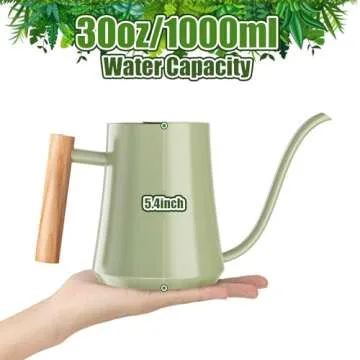 Show moreIntroducing the Watering Can Indoor Plants 35oz in a stylish Sage Green hue! This exquisite small metal watering can is tailor-made for plant lovers and garden enthusiasts alike. With a generous capacity of 1000 ml (35 oz), it is perfect for those who cherish their indoor greenery. Whether you have small bonsai trees, hanging plants, or tabletop potted flowers, the ergonomic design of our watering can allows you to hydrate multiple plants at once, reducing the need for frequent refilling.