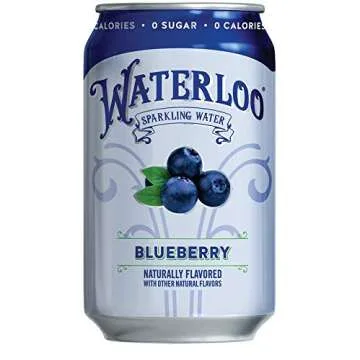 Show more Introducing the Waterloo Sparkling Water, Blueberry Naturally Flavored - the perfect companion for your hydration needs! Packaged in a convenient case of 12, each 12 Fl Oz can is filled with the essence of fresh, juicy blueberries that tickle your taste buds with every sip. This vibrant beverage is not only refreshing but is crafted to offer a delightful fruit-inspired flavor that is true to its ingredient. Say goodbye to sugary drinks and hello to guilt-free indulgence! Packaged in BPA-free aluminum cans, Waterloo ensures that your drink remains untouched by harmful chemicals, making it a safe choice for all.