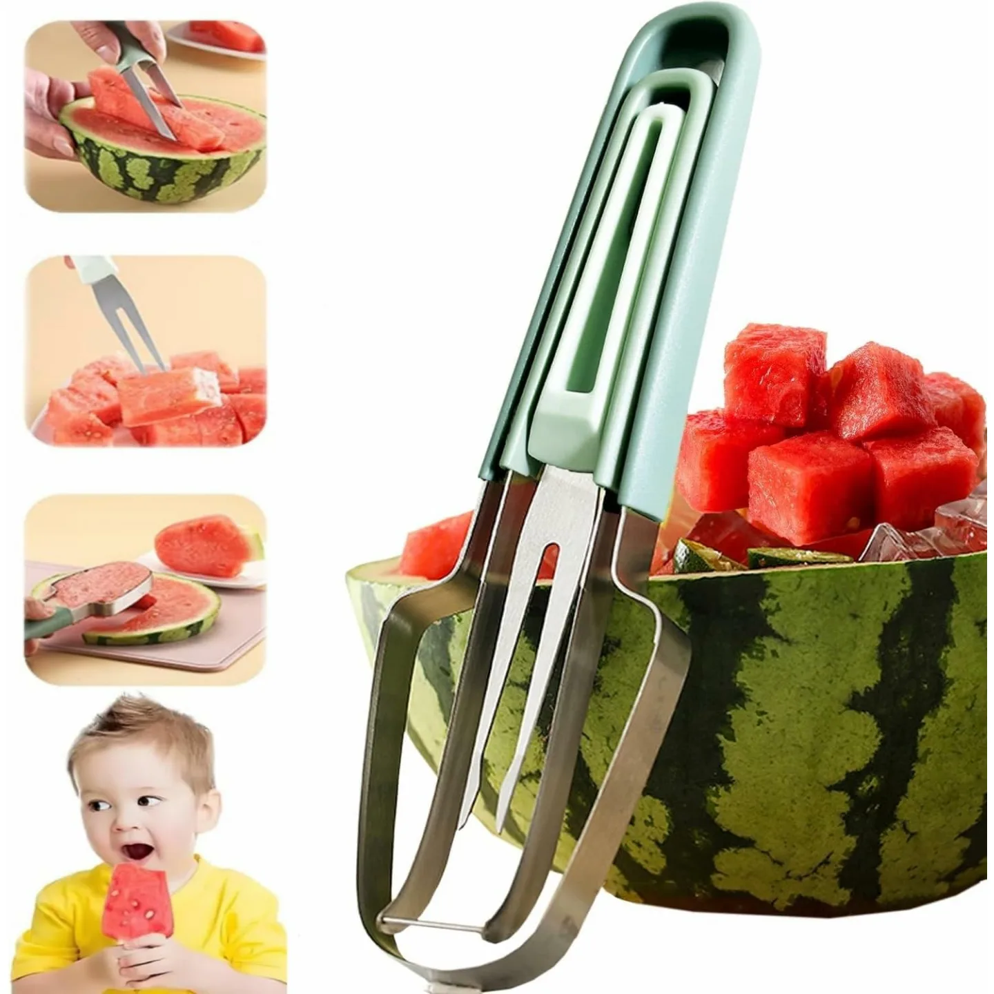 3-in-1 Watermelon Cutter Slicer Tool - Easy Melon Cutting & Serving