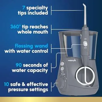Show moreRevitalize your dental hygiene routine with the Waterpik Aquarius Water Flosser, the pinnacle of oral care technology! This innovative device is not just another tool; it transforms dental health with its advanced water flossing capabilities. Designed with a sleek, modern aesthetic, it seamlessly integrates into any bathroom while delivering exceptional performance. The Waterpik Aquarius features an impressive 10 pressure settings, tailored to accommodate various sensitivity levels, ensuring everyone in your family finds their perfect comfort level. From those with sensitive gums to those needing a powerful deep clean, this flosser truly meets every dental need.