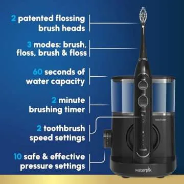 This powerhouse device features a rechargeable handle that charges effortlessly in its base, along with a 2-minute smart timer that includes a 30-second pacer to guide your brushing routine. Choose from adjustable speed settings to customize your cleaning experience, making it suitable for users of all ages. With a built-in water flosser boasting ten pressure settings, you can tailor your flossing to personal comfort levels while ensuring a thorough clean.