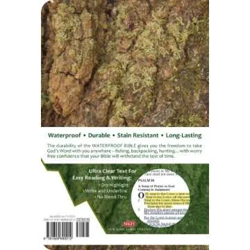 This incredible waterproof Bible is crafted for those who seek durability and resilience in their spiritual journey. Made with high-quality materials, it promises to stand the test of both nature and time. Whether you're encountering a sudden rain shower or enjoying your favorite bath, this Bible is designed to remain completely waterproof, ensuring that your precious pages stay safe and intact. The sturdy cover grants the strength needed to endure everyday wear and tear, making it perfect for the adventurer...