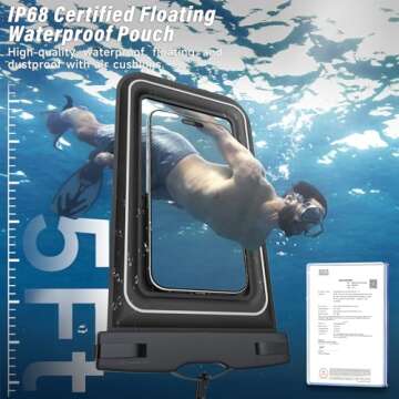 Waterproof Phone Pouch - 2 Pack IP68 Floating Waterproof Phone Case, Dry Bag Beach Cruise Essentials 2025 with Adjustable Lanyard for iPhone 16 Pro Max / 15 Pro / Galaxy S24 S23 (Black and White)