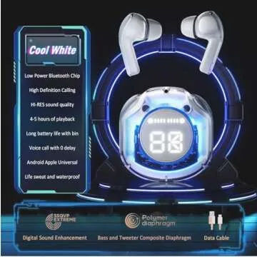 Waterproof wireless earphones, 5.3 Bluetooth wireless earphones with touch control, 10 meter connected running stereo electronic sports game earphones, small body/noise reduction/charging case, Black