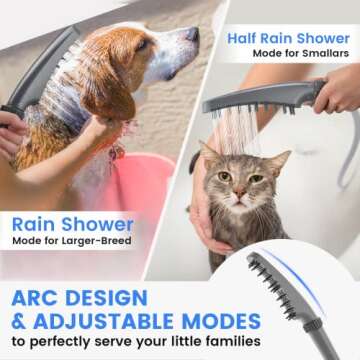 WaterSong Dog Shower Attachment, 4 Modes Pet Washing Shower Attachment with 118'' Hose & Rubber Cleaning Bath Soft Brush, Dog Sprayer Shower Head for Dogs or Cats with Long and Short Hair, Dark Grey