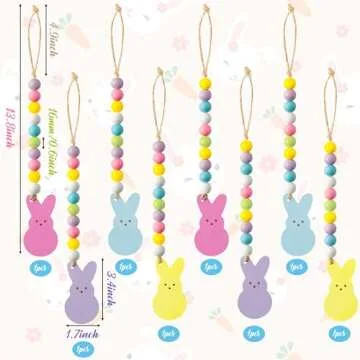 WATINC 8pcs Easter Wood Bead Garland with Tassels, Peeps Bunny Wooden Hanging Ornament Decoration, Double-Sided Colorful Rabbit Pendant Hang Decor with Rope for Easter Spring Holiday Party Tree Wall