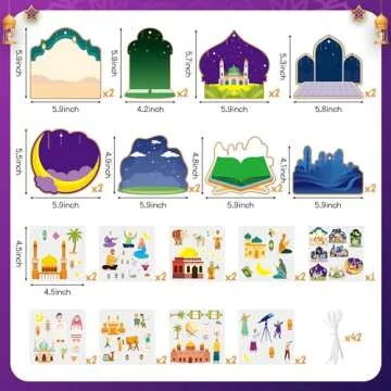 Show moreTransform your Eid celebrations into a colorful and engaging experience with the WATINC Ramadan Stickers Craft Gifts for Kids. This delightful set includes a total of 123 pieces, combining 40 enchanting scene cards featuring stunning mosque patterns, 40 festive Eid-themed stickers, and a bundle of 42 white ribbon ropes. Whether you're looking to enhance your home décor or create memorable educational activities, this craft kit provides everything you need for a vibrant celebration of Ramadan. Each item is thoughtfully designed to inspire creativity, making it the perfect gift for children and families aiming to illustrate the spirit of Eid together.