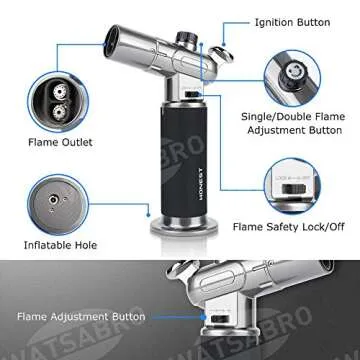 WATSABRO Kitchen Blow Torch,Culinary Butane Torch Lighters Refillable Double Fire Cooking Torch,Mini Adjustable Flame Butane Lighters for Dabs,Creme Brulee,Food and BBQ (Butane Gas Not Included)