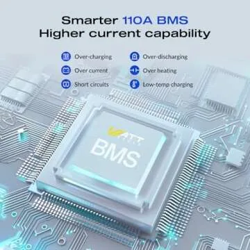 Equipped with advanced 110A Battery Management System (BMS), this battery provides exceptional protection against overcharging, deep discharging, overheating, and short circuits. This thoughtful design ensures your battery operates at peak efficiency, safeguarding the vital lithium cells housed within.