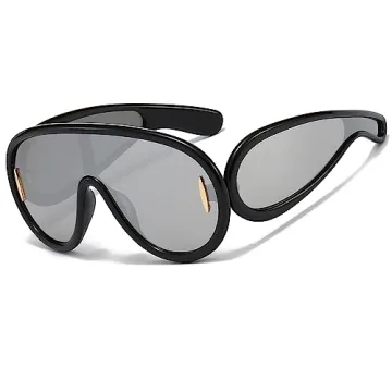 Show moreStep out into the summer sun with confidence wearing the Wave Mask Sunglasses for Women and Men! These oversized visor sunglasses are not just a fashion statement; they're a blend of style and functionality, designed for those who dare to be different. The unique mirrored shield design and oversized frames add a bold flair to any outfit, ensuring you not only protect your eyes but also look effortlessly cool.