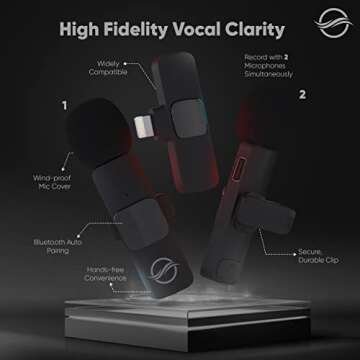 Show more Introducing the revolutionary Wave360 lav-mic-duo wireless clip-on lapel microphone, a must-have for anyone serious about sound quality and ease of use. This innovative device combines Active Noise Cancelling technology to ensure that background distractions are eliminated, enabling crystal-clear audio for all your recording needs, whether using your iPhone (5th Gen+) or iPad (2nd Gen+).