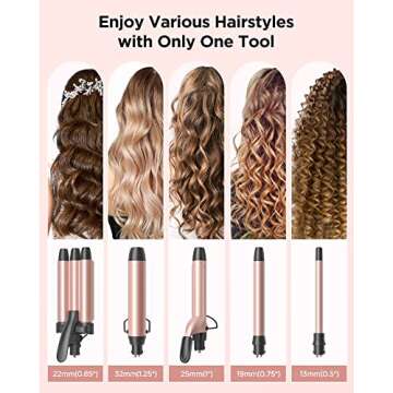 Wavytalk 5 in 1 Curling Iron Set with Three Barrel Curling Iron and 4 Interchangeable Ceramic Fast Heating Wand Curling Iron, Dual Voltage Hair Waver (Rose Gold)