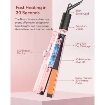 Discover the ultimate hair styling experience with the Wavytalk Hair Straightener and Curler 2-in-1! This innovative 1-inch titanium flat iron is designed not only to straighten but also to curl your hair, making it a versatile addition to your beauty routine. Thanks to its 3D floating plates, this flat iron glides seamlessly over your hair, reducing snagging and ensuring a smooth finish. The nano-titanium technology heats up quickly and evenly distributes heat for sleek, frizz-free results...