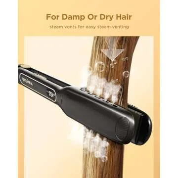 Wavytalk Hair Straightener, Titanium 1.75 Inch Vent Sesh Wide Flat Iron, Straightener for Damp or Dry Hair with Dual Voltage Leave Hair Silky Smooth, Black