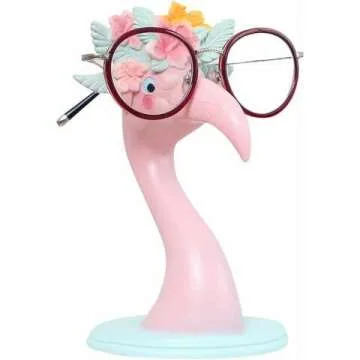 Show moreThe WAWICE Fun Eyeglass Holder Display Stand is a whimsical and practical accessory designed to keep your eyeglasses organized in a fun and decorative manner. This charming model features a unique pink flamingo design, adding a splash of color and personality to your home or office. Crafted from high-quality resin material, the eyeglass holder is both durable and long-lasting, ensuring that it remains a delightful addition to your space for years to come. Measuring 3 inches by 4.1 inches by 5.7 inches, it offers a compact solution that doesn't crowd your desk or counter, while still providing ample stability with its wide base.