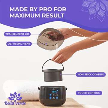 Show more Introducing the Bella Verde Wax Warmer, the ultimate at-home hair removal solution designed to transform your self-care routine. This innovative wax warmer features precise sensitive control, maintaining an optimal temperature to ensure a comfortable waxing experience without burns. Operating within a range of 160°F to 240°F, our warmer adapts to your skin's needs, ensuring a smooth and pain-free waxing process whether you're tackling Brazilian, bikini, eyebrow, leg, upper lip, or body wax.