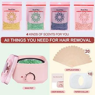 Waxing Kit Wax Warmer Hair Removal, with Hard Wax Beans, Adjustable Temperature for All Wax/Hair Types, Eyebrow, Facial, Body, Bikini, Brazilian, Full Body At Home Waxing Painless