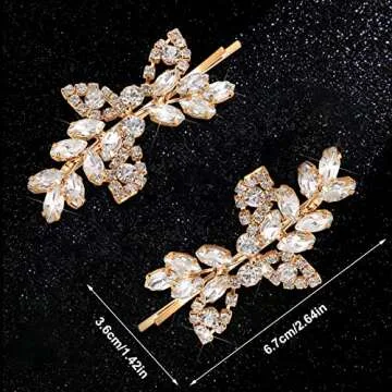 Waydress 4 Pcs Rhinestone Bridal Hair Clip Leaf Wedding Hairpin Bride Crystal Hair Barrette Accessories for Women (Gold, Rhinestone Style)