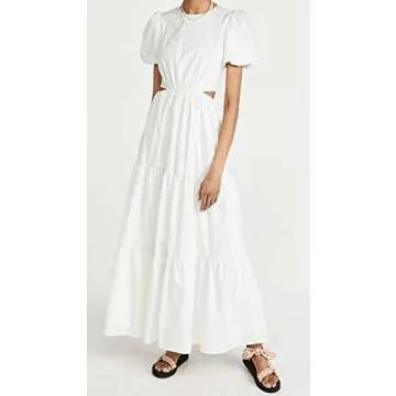 WAYF Women's Plaza Cut Out Tiered Maxi Dress, Ivory, White, M