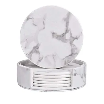 Show moreIntroducing the WAYIFON Coasters for Drinks - a perfect blend of functionality and elegance! Crafted from premium double-sided PU leather, these coasters are not only lightweight but also soft and gentle on all types of surfaces. Whether you're enjoying a hot cup of coffee or an icy glass of water, these coasters brilliantly protect your precious dining table and countertops from unsightly stains and damage caused by spills. The chic marble white pattern ensures that they seamlessly blend with any home décor, making them an ideal addition for style-conscious households.