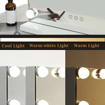 One of the standout features of this mirror is its Adjustable Lighting. Equipped with 18 LED bulbs, it provides three color lighting modes—Cool, Warm White, and Warm—to suit various makeup needs. The adjustable brightness ensures you always have the best lighting, regardless of the time of day or ambient light in your room.
