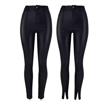 WAYRUNZ Womens High Waisted Stretch Faux Leather Pants PU Coated Legging Juniors (032-coated Black 7)