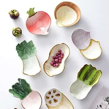 WAYUTO Ceramic Serving Plate Vegetable Themed Fruit Tray Serveware Platters Condiment Tray Pasta Bowl Sauce Dish Relish Tray for Fruit Salad Cheese Dessert Snack Cereal Oatmeal Party Tomato