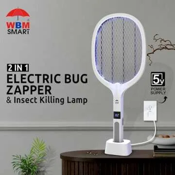 WBM SMART 2 in 1 Electric Bug Zapper, Mosquitoes Trap Lamp & Racket, USB Rechargeable Electric Fly Swatter for Home and Outdoor Powerful Grid 3-Layer Safety Mesh Safe to Touch