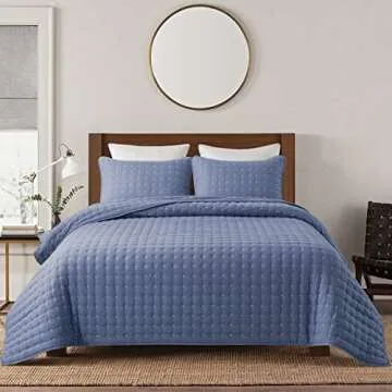 Show more Introducing the WDCOZY Blue Twin Size Quilt Bedding Set, a perfect blend of comfort, style, and practicality. Crafted from 100% microfiber polyester, this quilt set promises a more durable, soft, and cozy experience, making it an ideal addition to any twin size bed. Measuring 68x90 inches, this lightweight coverlet is designed to keep you comfy all year round, adapting to your needs whether it’s summer, spring, or a chilly winter night. Plus, the soothing blue hue not only adds a touch of elegance to your space but also complements various bedroom aesthetics.