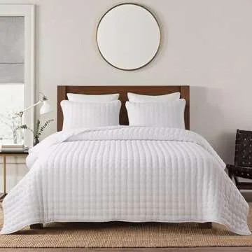 Show moreIntroducing the **WDCOZY White King Size Quilt Bedding Set**, a perfect blend of style, comfort, and functionality. Crafted from **100% microfiber polyester**, this ultra-soft bedding ensemble promises durability and coziness, ensuring a sublime sleep experience every night. The set includes a king-sized quilt measuring **104x90 inches** alongside two matching pillow shams measuring **20x36 inches**, making it an ideal choice for a king-size bed. This lightweight bedspread coverlet is specifically designed to cater to your comfort needs throughout the year, whether it’s a warm summer night or a chilly winter evening.