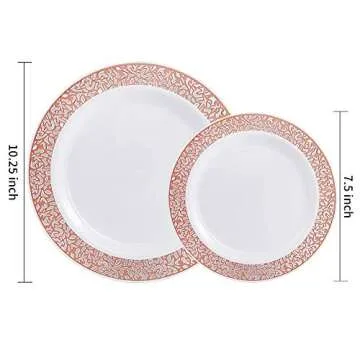 WDF 102pcs Rose Gold Plates - Lace Design Disposable Plastic Plates - include 51 Plastic Dinner Plates 10.25inch,51 Salad Plates 7.5inch Rose Gold Plastic Plates
