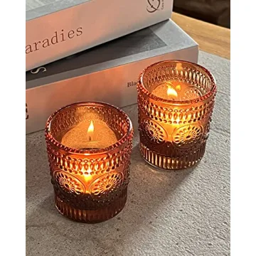 Show moreIlluminate your space with the stunning WDHODEC Glass Votive Candle Holders Amber Set of 12. These exquisite tealight candle holders perfectly combine elegance and functionality, making them ideal for any occasion. Measuring at 2.17 inches in diameter and standing at 2.67 inches high, they perfectly accommodate standard tealight candles and LED lights. The beautiful amber hue adds warmth while the embossed sunflower design adds a vintage touch, enhancing the glow of candlelight beautifully. Crafted from premium thick glass, these holders are not just visually appealing but also durable, ensuring they can be reused for countless celebrations.
