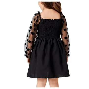 Show moreIntroducing the WDIRARA Toddler Girl's Polka Dots Mesh Flounce Long Sleeve Flared Shirred Dress in classic black, a stylish and versatile addition to your little one's wardrobe. This charming dress features a sophisticated square neck design that beautifully enhances your toddler's neckline, perfectly complemented by adorable flounce sleeves that add a playful touch. Crafted from high-quality mesh fabric, this dress prioritizes both aesthetics and comfort. Though the fabric has no stretch, it is incredibly soft against the skin, ensuring that your child can enjoy hours of comfortable wear during any event.