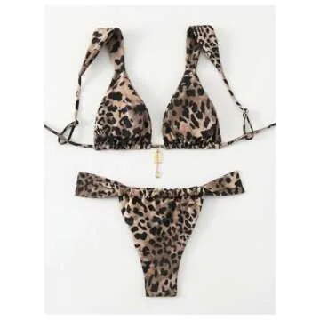 WDIRARA Women's 2 Piece Leopard Print Swimsuits Triangle High Waisted Bathing Suit Brazilian Bikini Sets Multicolor Leopard Small