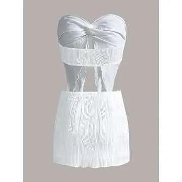 WDIRARA Women's 2 Piece Outfit Twist Front Asymmetrical Hem Crop Tube Top and Bodycon Skirt Set White XS