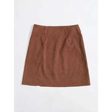 WDIRARA Women's Corduroy Mid Waist Split Hem Zip Side Casual Mini Skirt Brown L