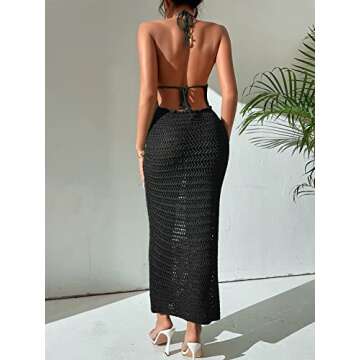 WDIRARA Women's Crochet Sleeveless Maxi Dress Backless Halter Bodycon Dresses Black S