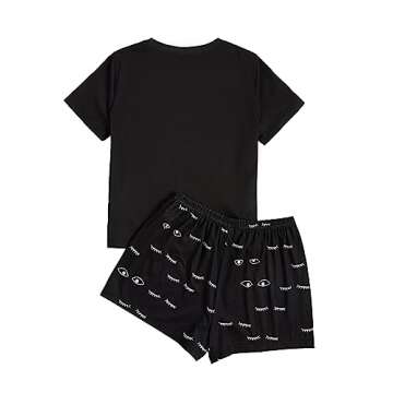 Indulge in comfort and style with the WDIRARA Women's Cute Cartoon Print Closed Eyes Print Tee and Shorts Pajama Set. Designed with a lightweight and stretch fabric, this two-piece pajama set perfectly combines playful aesthetics with functional comfort. The adorable cartoon print featuring closed eyes adds a whimsical touch, making it a delightful choice for cozy nights and lazy mornings alike. With a round neck and short sleeves, it ensures you can relax freely while maintaining a touch...