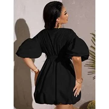 Show moreIntroducing the stunning WDIRARA Women's Deep V Neck Puff Sleeve High Rise Flare Dress, a perfect blend of style and comfort tailored for the modern woman. This exquisite mini dress showcases a captivating deep V neck design and elegant puff sleeves that add flair and femininity to your look. Crafted from soft, lightweight fabric, the dress is designed with an elastic waist that flatters any figure, allowing for ease of movement while ensuring you feel comfortable throughout your day or night. The high-rise and flare hem give it a charming silhouette that's perfect for both casual outings and more glamorous events.