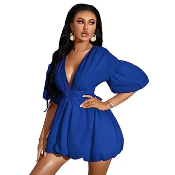 Show moreIntroducing the ultimate statement piece for your wardrobe—the WDIRARA Women's Deep V Neck Puff Sleeve High Rise Flare Dress, designed to redefine elegance and comfort. This stunning mini dress comes in a vibrant royal blue that is sure to turn heads at any event. A striking deep V neck adds a touch of sophistication, perfectly framing your neckline, while puff sleeves lend an air of charm and femininity. The high-rise elastic waist not only emphasizes your silhouette but also ensures the ideal fit for all body types, making it an essential addition to your collection.