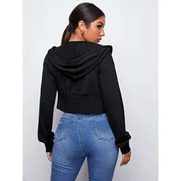 WDIRARA Women's Drop Shoulder Zip Up Drawstring Hoodie Black S