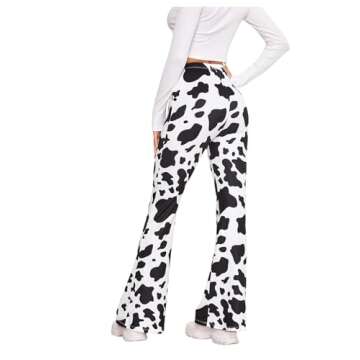 Introducing the **WDIRARA Women's Elastic High Waist Rib Knit Flare Leg Solid Casual Long Pants** in a stunning Black and White Cow design. Perfectly crafted for the modern woman, these pants offer the perfect blend of style and comfort. Featuring a smooth elastic high waist, these pants contour your body beautifully while providing a snug fit without compromising on ease of movement. The rib knit fabric not only offers a luxurious feel but also ensures sufficient stretch, making them ideal for any occasion....